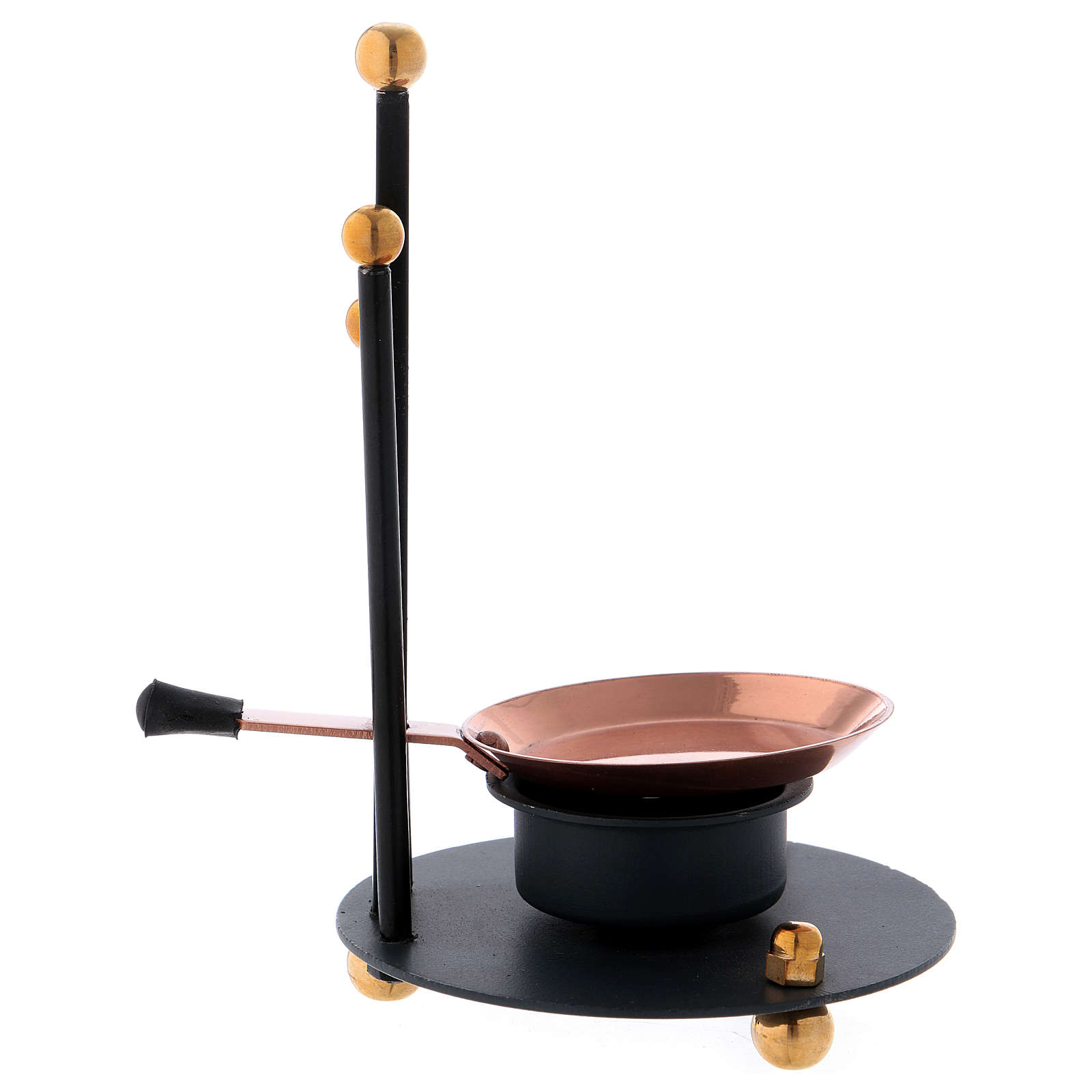Brûle-encens en fer 16 cm. Brûle-encens en fer avec coupelle pour encens de hauteur réglable, réalisée en cuivre.