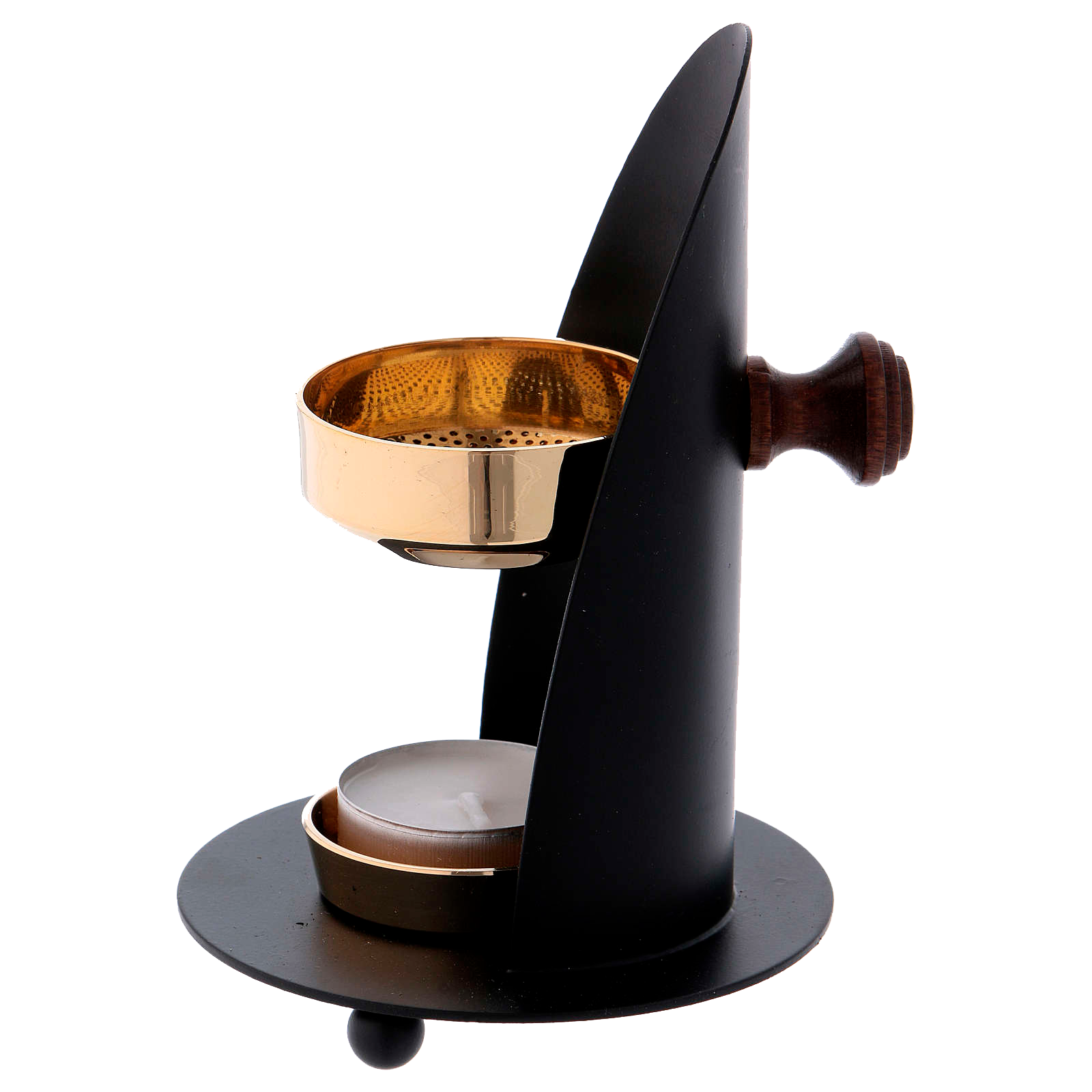 Brûle-encens laiton noir avec pommeau en bois 12 cm.