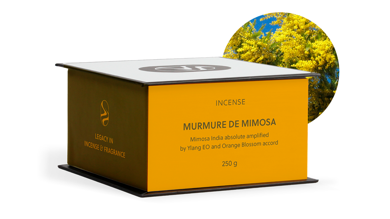 Een subtiele, lineaire geur met een lichte vintage uitstraling. Bloemrijk. Met zijn discrete fruitige, poederachtige accenten en amandelachtige inflecties wordt een zachte, licht bittere evolutie onthult, die de groenheid van een ruwe stengel oproept. In zijn onschuldige, mooie eenvoud is het een vrij letterlijke en figuratieve interpretatie van deze winterbloem: de zonnige streling van een donzige gouden mimosa, verrijkt met Mimosa Indes en absolue.
